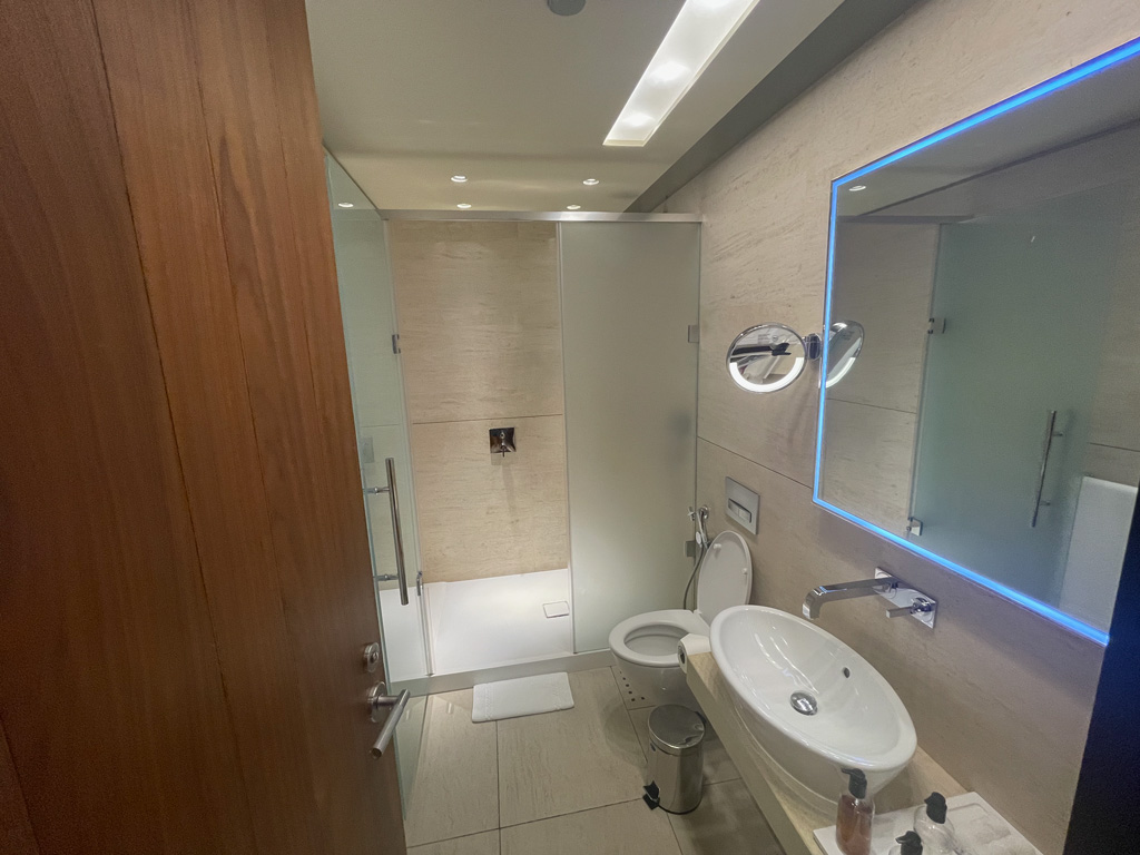 Ein weiterer wichtiger Unterschied ist, dass die Schlafräume in der Al Safwa First Class Lounge wie kleine Hotelzimmer mit eigenem Bad (inkl. Dusche sind). In der Business Class Lounge handelt es sich lediglich um Räume mit einem Bett.