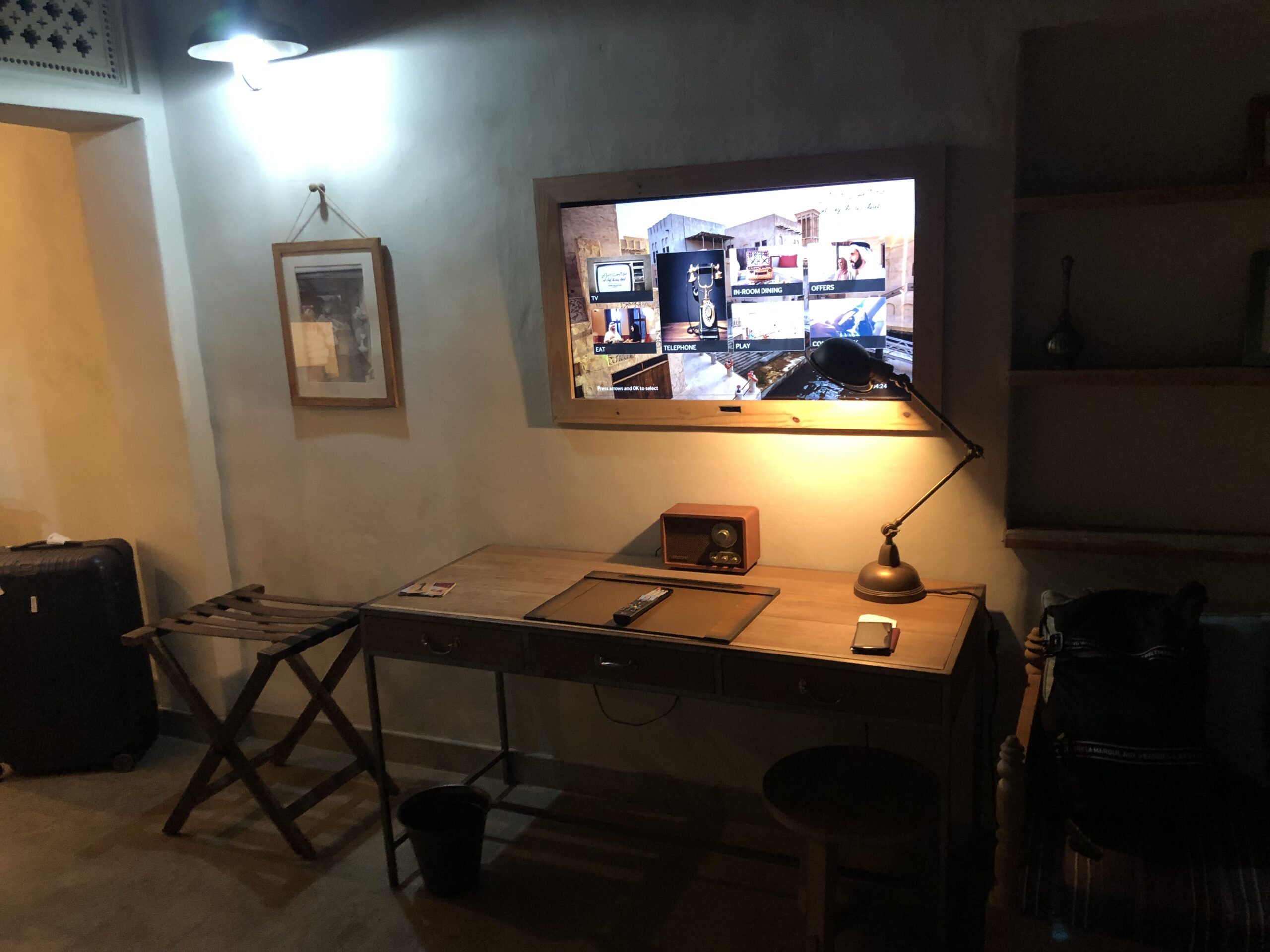 Das Hotel liegt nur etwa 15 Minuten vom riesigen Flughafen Dubai entfernt. Die Zimmer sind auf einem 2017 eröffneten Souk verteilt, das Areal ist riesig und zieht sich auf beinahe 2 Kilometer. Um zu manchen Zimmern zu kommen wird man von der Rezeption mit einem Buggy gefahren. Wir waren entsprechend früh im Hotel, es gab einige freie Zimmer und ein Bezug des Zimmers um 6 Uhr morgens war kein Problem.