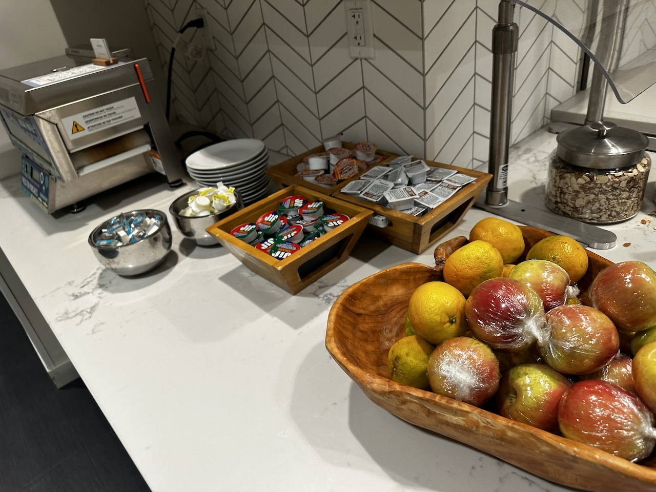 Den Kaffee bekommt man auf Wunsch in einer Tasse, wer nicht viel Zeit hat, darf diesen „to go“ bestellen und im Pappbecher mit ins Terminal nehmen. In den USA wird es in der Regel akzeptiert, wenn man bestimmte Dinge aus der Lounge mitnimmt. Apropos: Am Ausgang steht eine Auffüllstation für Wasserflaschen und Trinkbehältnisse.