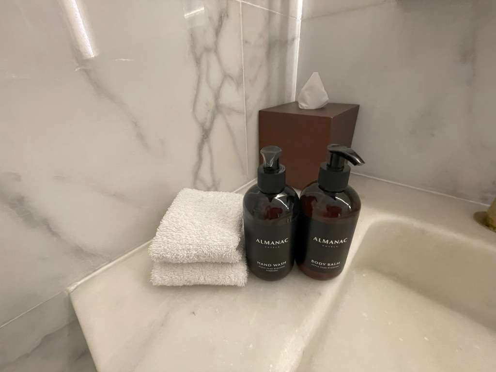 Mein Zimmer mit der Nummer 408 liegt sehr zentral in der Nähe der Fahrstühle auf der 4. Etage. Von einem kleinen Eingangsbereich führte eine Tür zu einem kleinen Raum mit separatem WC. Das eigentliche Badezimmer befand sich direkt daneben in einem offenen Bereich. Dahinter eröffnete sich mir das eigentliche Almanac Zimmer.