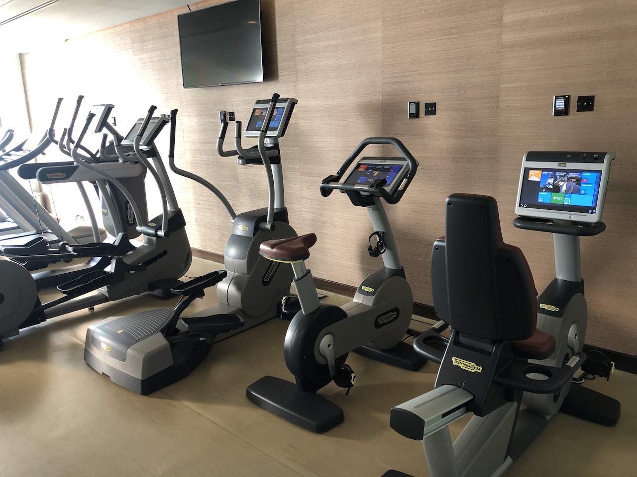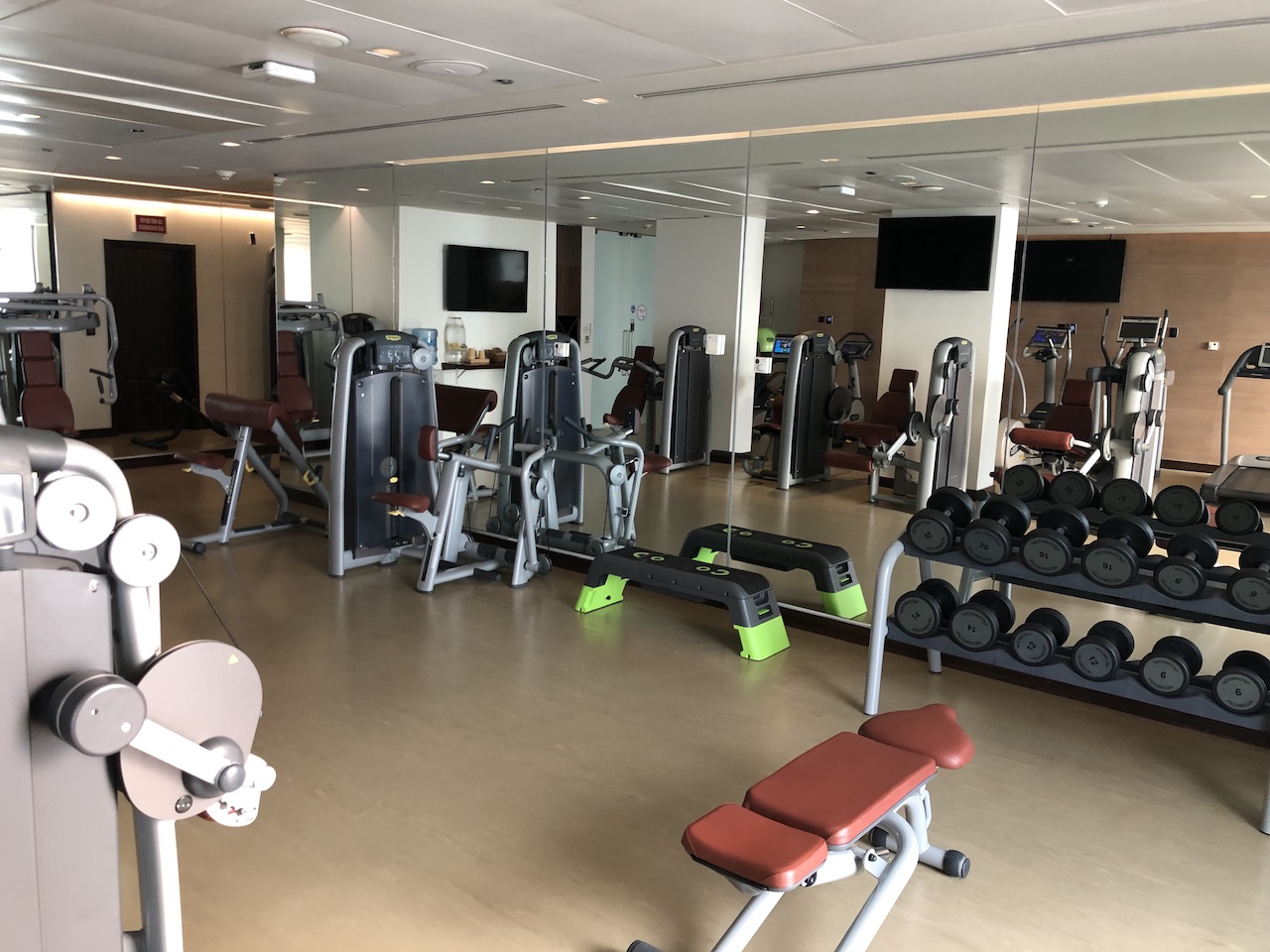 Im dritten Stockwerk gibt es ein großes Fitnessstudio.