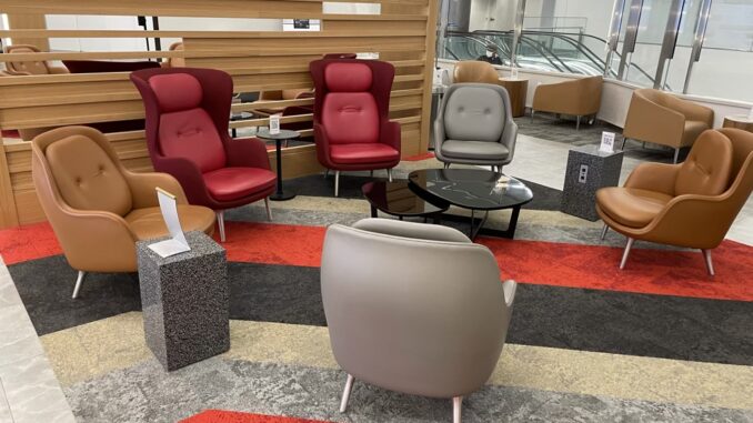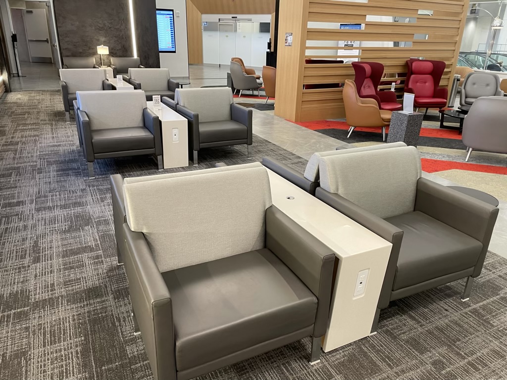 Durch die Lage auf der Empore über den Gates, ist der Club auch sehr hell und angenehm. Dabei findet man im vorderen Bereich der Lounge eine Reihe verschieden gestalteter Sitzmöglichkeiten, welche ich persönlich sehr schön gestaltet finde.