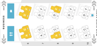 Die Business Class im A321T befindet sich zwischen den zweiten und dritten von vier Türpaaren des Flugzeuges und ist mit festen Wänden bzw. Bordküchen von den anderen Klassen getrennt.
