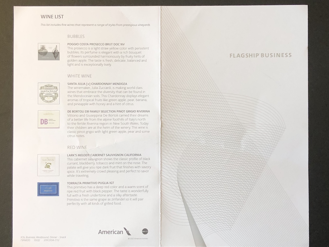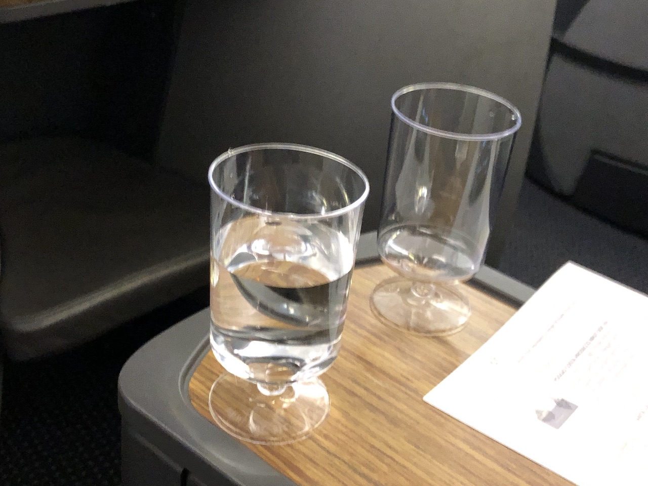 Die Speisekarten lagen bereits an den Sitzen, zum Einstieg wurden Wasser, Saft & Prosecco serviert. Champagner ist auf diesen Flügen nur den First-Kunden vorbehalten.
