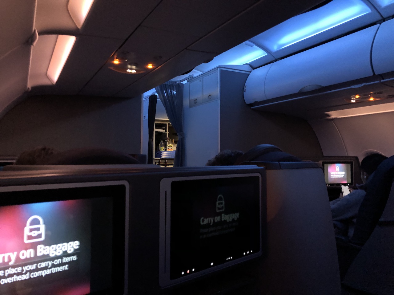 Die Kabinen waren auf meinen Flügen die meiste Zeit eher abgedunkelt, die Flugbegleiter nutzten das Moodlight.