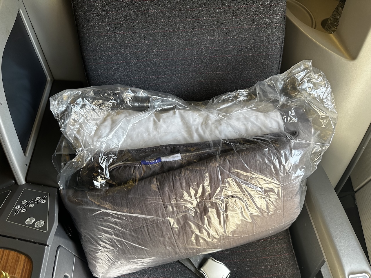 Auf den Plätzen lagen schon beim Boarding Kissen und eine dickere Decke.