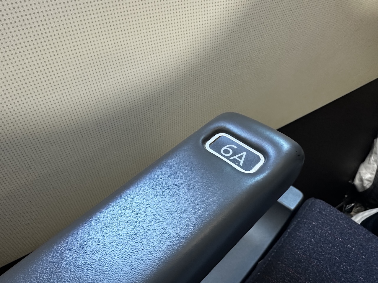 Wir hatten die Plätze 6 A und C, es ist die erste Reihe der Business Class. Auch hier gibt es fünf Reihen, die Bestuhlung ist in einer 2-2 Anordnung. Insgesamt können also 20 Gäste in dieser Klasse fliegen. Die Sitze lassen sich komplett flach stellen, wer am Fenster sitzt, aber dann über den Nachbarn klettern.