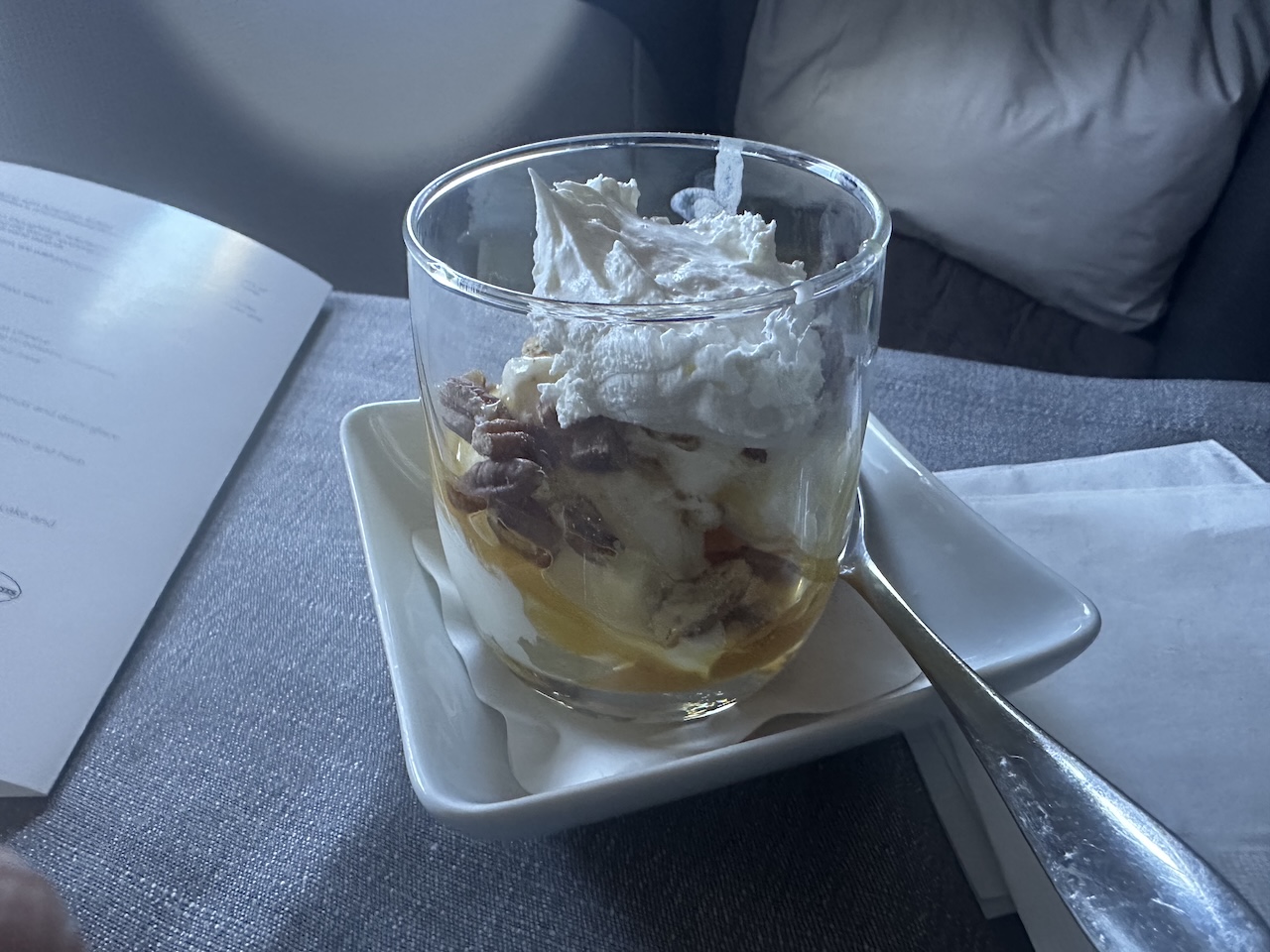 Die Flugbegleiter haben uns mit Namen angesprochen und waren offen für Sonderwünsche. Der erste Serviceblock hat nur etwa eine Stunde gedauert, einige Passagiere nutzen den ganzen Flug um zu schlafen. Die Landung erfolgte überpünktlich.