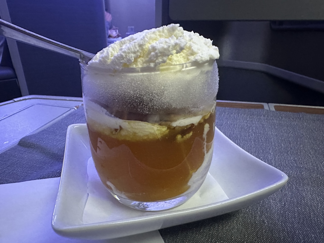 Mit dem Service muss man sich nicht verstecken, das Steak war gut, der Nachtisch ein leckerer amerikanischer Klassiker. Ich hätte lieber noch einen Wein probiert oder noch Käse bestellt, die Crew hat die Menüfolge aber in Rekordzeit und ohne persönlichen Touch abgespult.