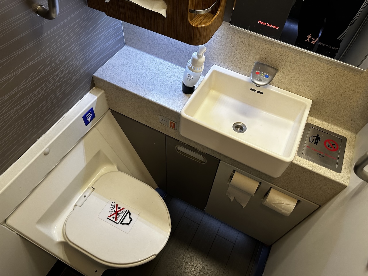 American Airlines Business Class Waschraum, Foto: Robert