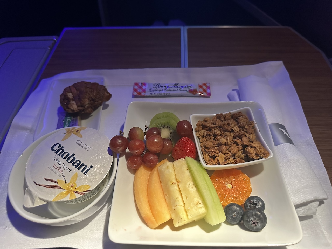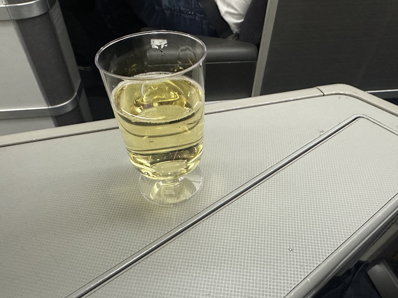 1. Die Hektik beim Service ist bei Flügen von USA nach Europa inzwischen bei allen Airlines normal, da die meisten Passagiere in First und Business Class so schnell wie möglich schlafen möchten. Da soll schnell Ruhe in der Kabine einkehren. Beim Champagner überrascht mich One World immer mit Originalität. Außer bei Qatar Airways gibt es bei One World fast nur noch Nicolas Feuilatte.