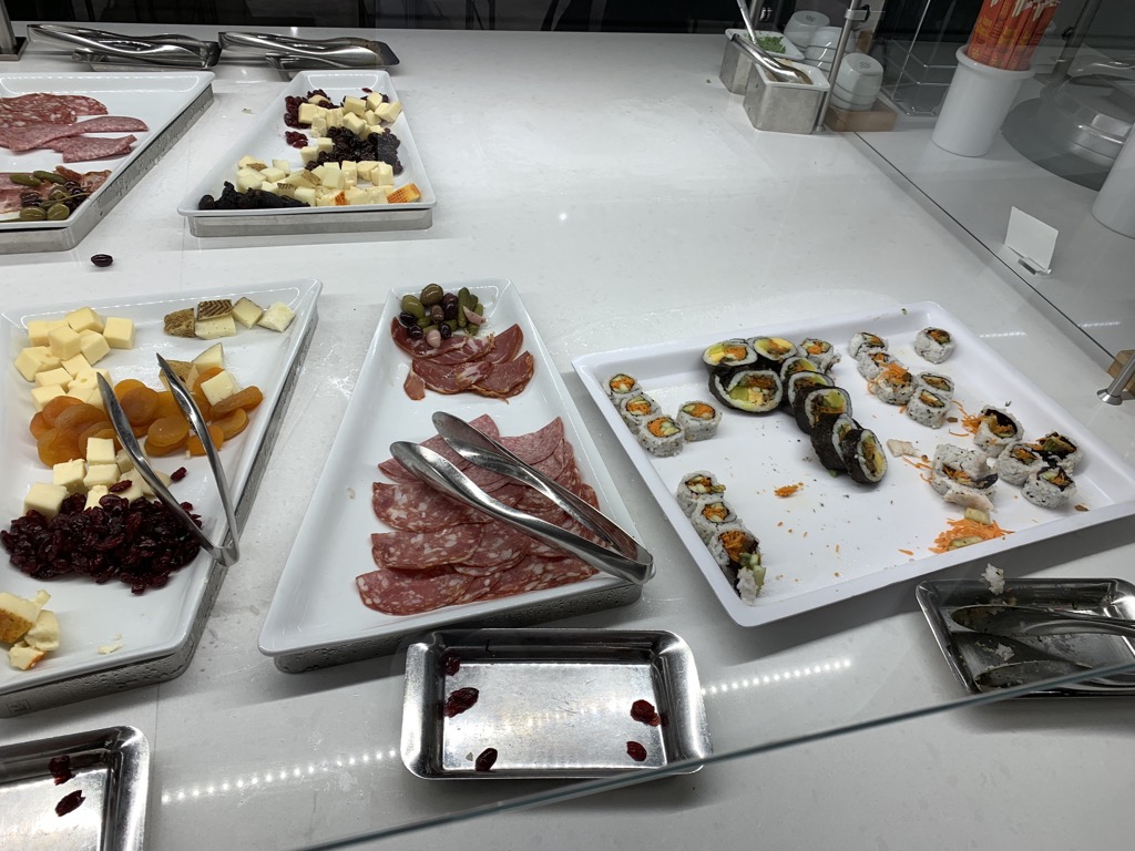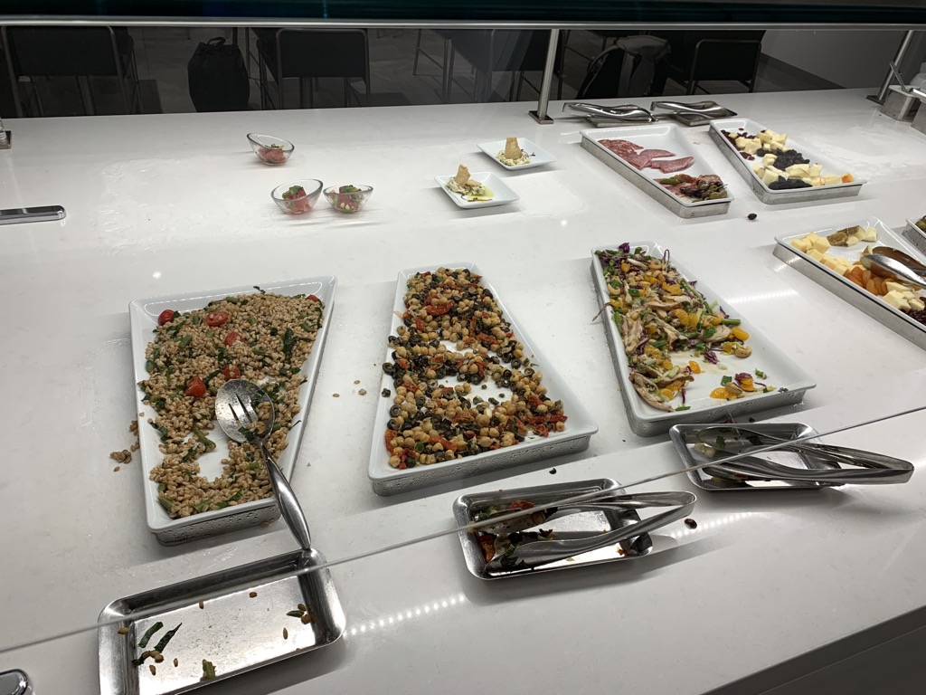 Was mich bei dem Angebot, besonders an den Speisen gestört hat, war der Zustand des Buffets. Ich habe die Lounge etwa zwei Stunden vor dem Schließen besucht. Damit war es zwar schon recht spät, allerdings gehen zu dieser Uhrzeit eine Reihe von Langstreckenflüge in Chicago raus. Das Buffet war zu diesem Zeitpunkt schon recht abgegrast und sah auch sehr zerpflückt auf. Aufgefüllt oder neu gerichtet wurde dennoch nichts mehr und das obwohl mehr als genug Personal in der Lounge war.