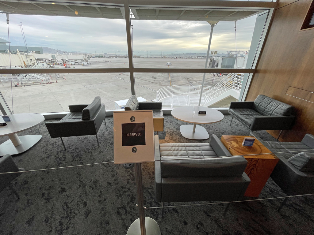 Für Inhaber der Centurion Karte gibt es einen abgetrennten Sitzbereich mit Vorfeldblick. Das erinnerte mich ein wenig an „meinen“ abgetrennten Bereich in der Air France Lounge in Frankfurt als Reisender in der La Premiere.