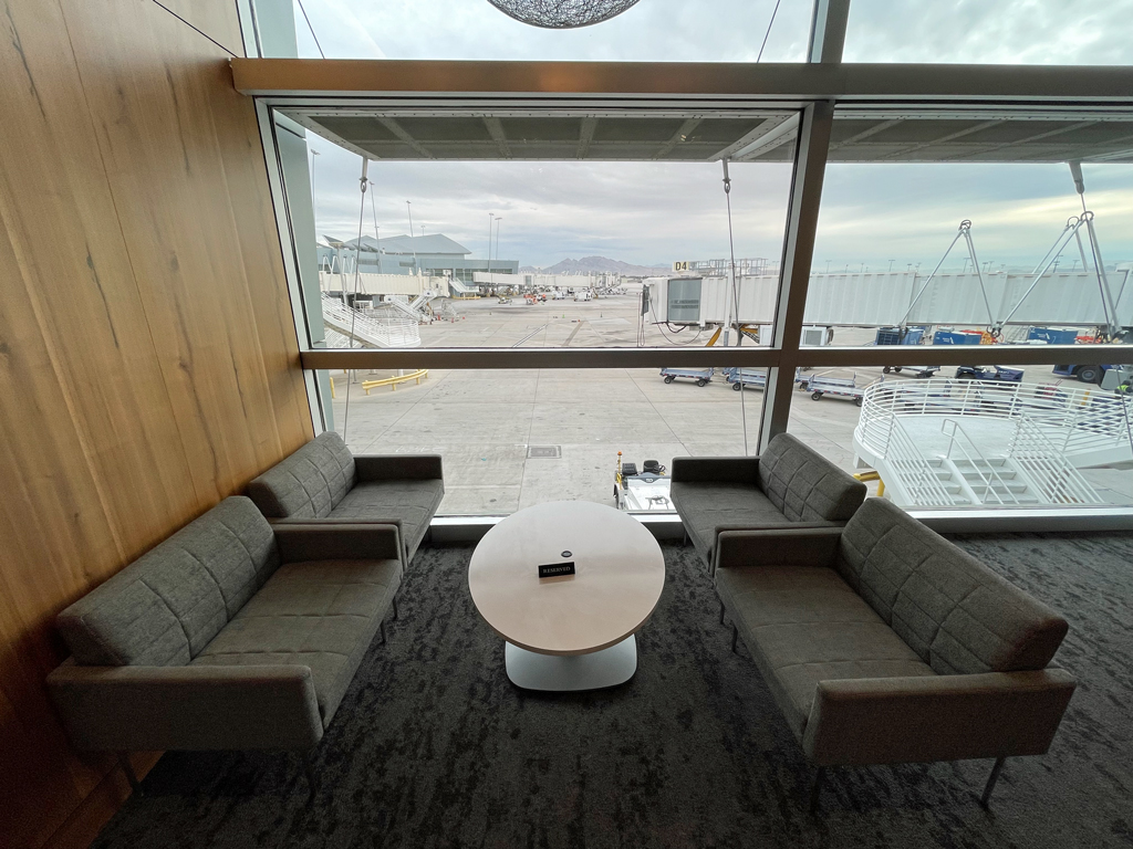 Die Lounge bietet neben Sitzgelegenheiten und Verpflegung noch gratis WLAN, ein Business Center, Telefonräume, eigene Toiletten und Blick auf das Vorfeld.