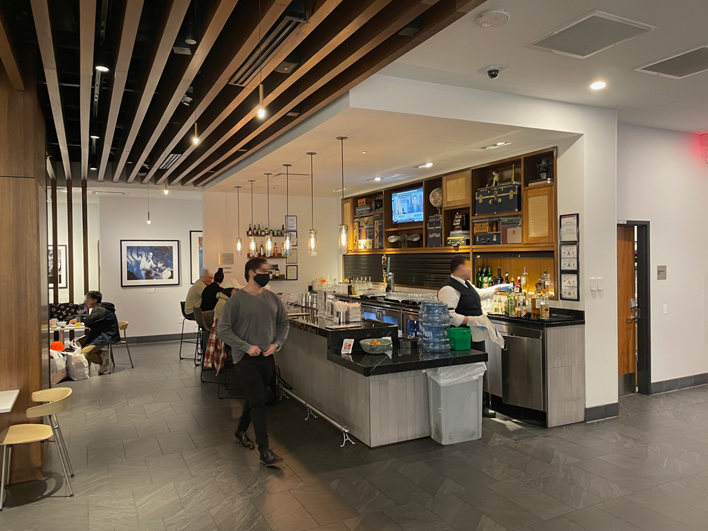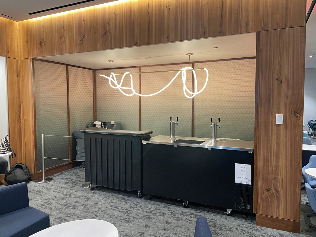 Ein Highlight (für manche aus das Highlight) der American Express Centurion Lounge in Las Vegas ist die Bar. Hier gibt es ab 5 Uhr morgens Cocktails, Sekt, Wein, Bier und jede Menge alkoholfreie Getränke. Und das vollkommen kostenlos. Ich konnte noch nicht einmal ein Glas für Trinkgeld an der Bar ausmachen.