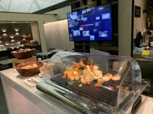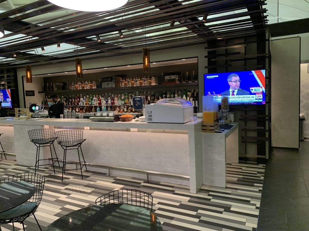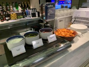 Und typisch für US-Lounges gab es an der Bar noch Käsewürfel und Nachos mit Guacamole und Co.