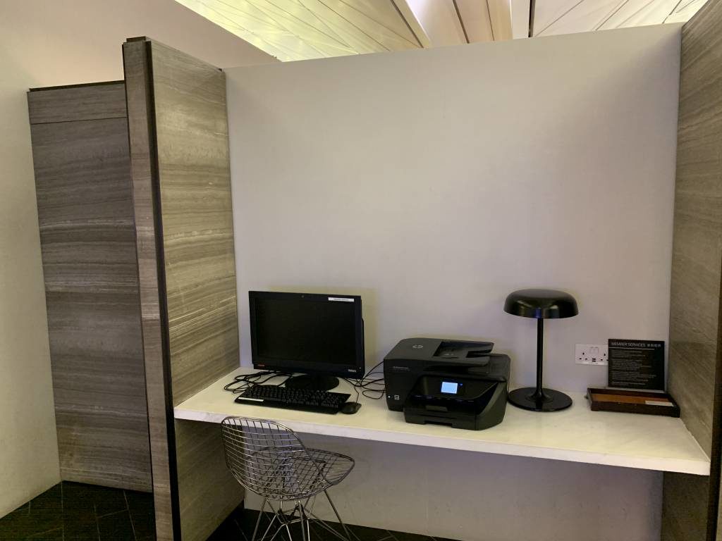 Nachdem Ihr an der Rezeption eingecheckt habt, folgt Ihr zunächst einem Gang. Hier befindet sich der Meetingraum der Lounge und einige Business-Einrichtungen, wie PC und Drucker. Danach gelangt Ihr in den offenen Lounge-Bereich.