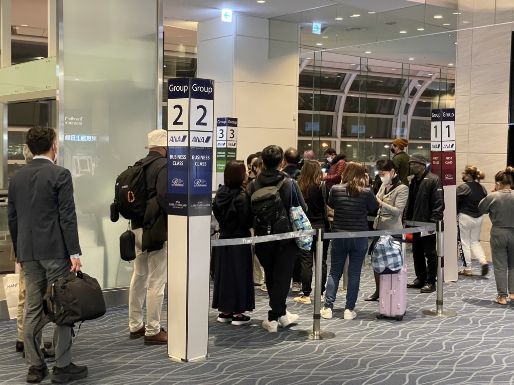Die verschiedenen Gruppen sind am Gate direkt mit klaren Schildern ausgewiesen und in Japan stellt man sich hier auch sehr gewissenhaft und geordnet an, sodass dies sehr gut funktioniert hat.