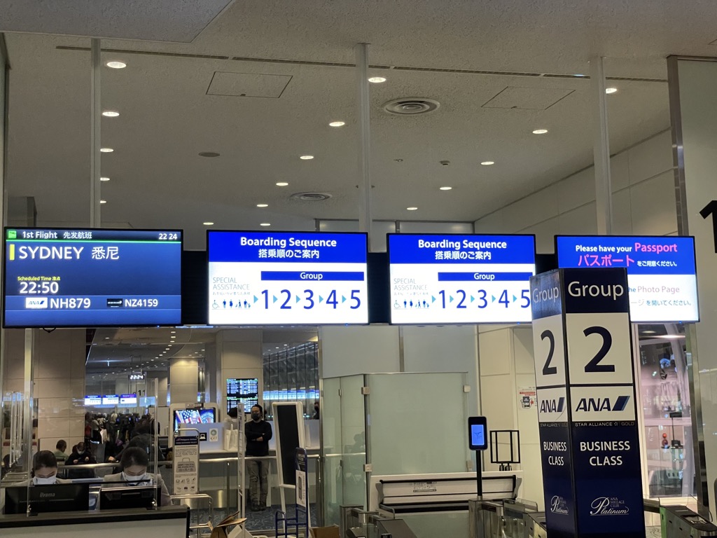 Das Boarding für den Flug nach Sydney war tatsächlich nur 20 Minuten vor der geplanten Abflugszeit angesetzt. Dies ist in Japan nicht unüblich und ich durfte inzwischen auch lernen, dass die Japaner derartig effizient sind, dass man es tatsächlich schafft, auch ein Großraumflugzeug wie eine Boeing 787-9 in teils weniger als zehn Minuten zu boarden.