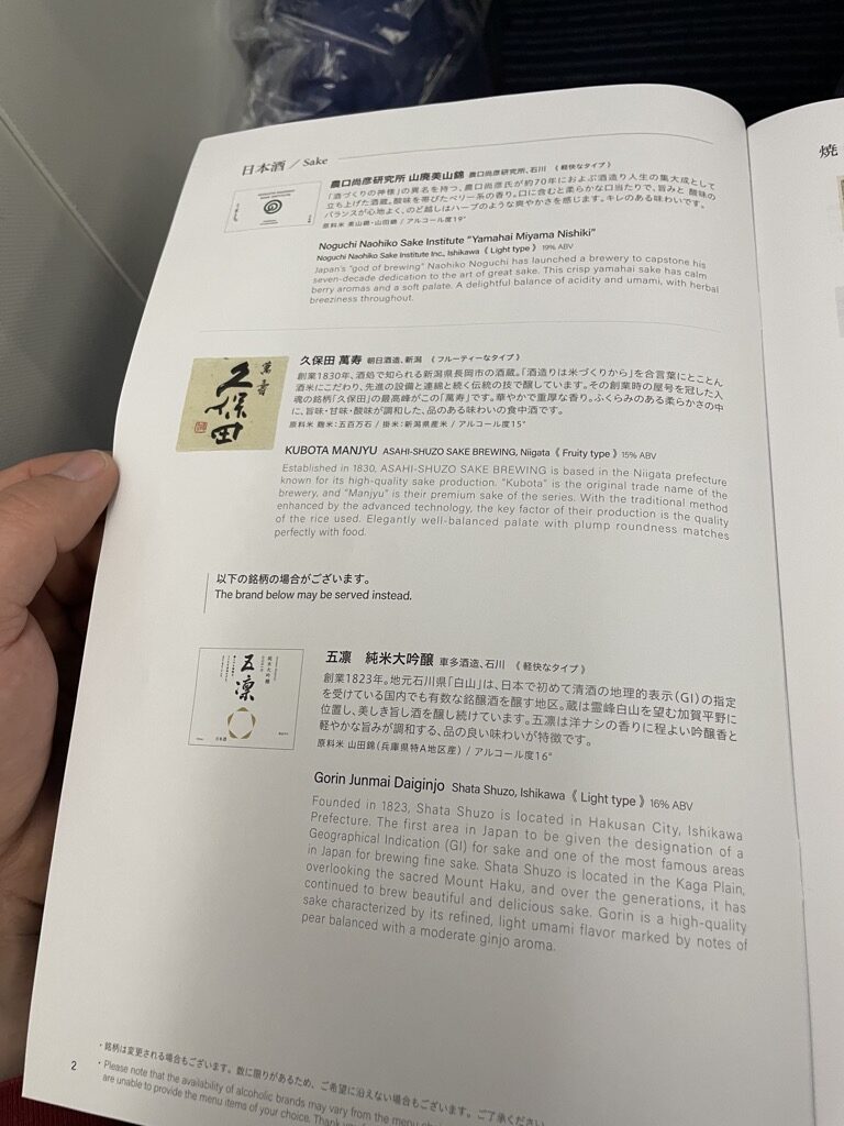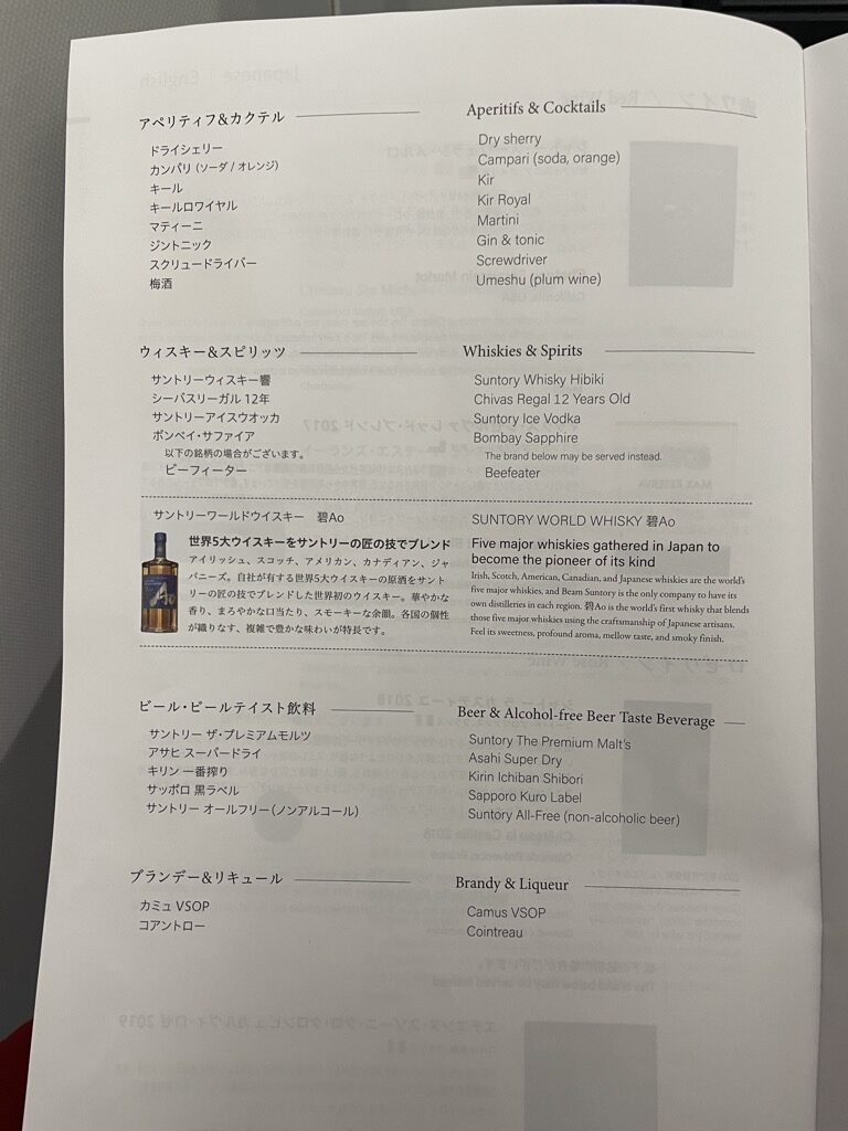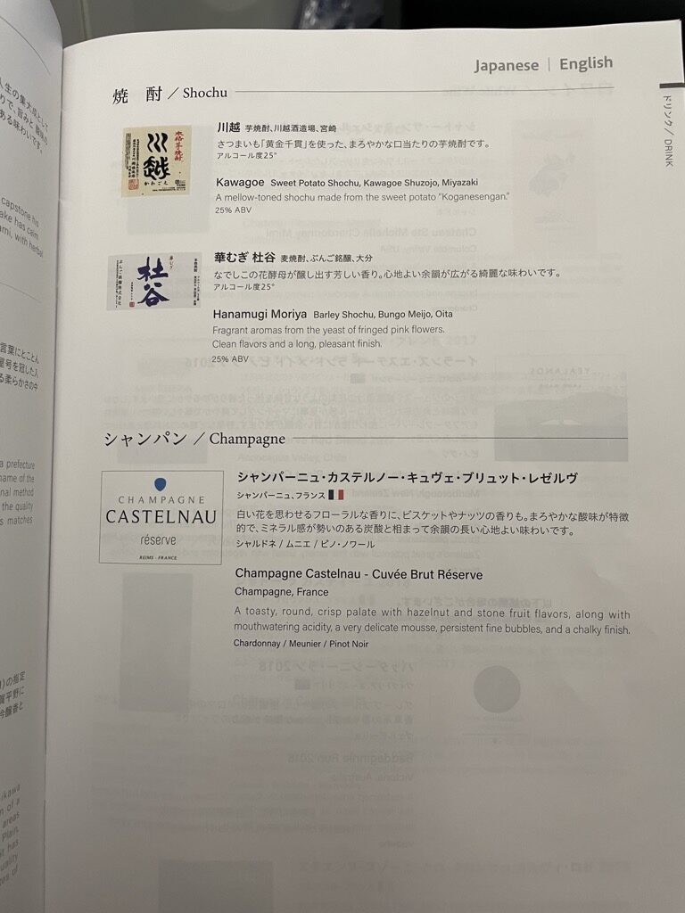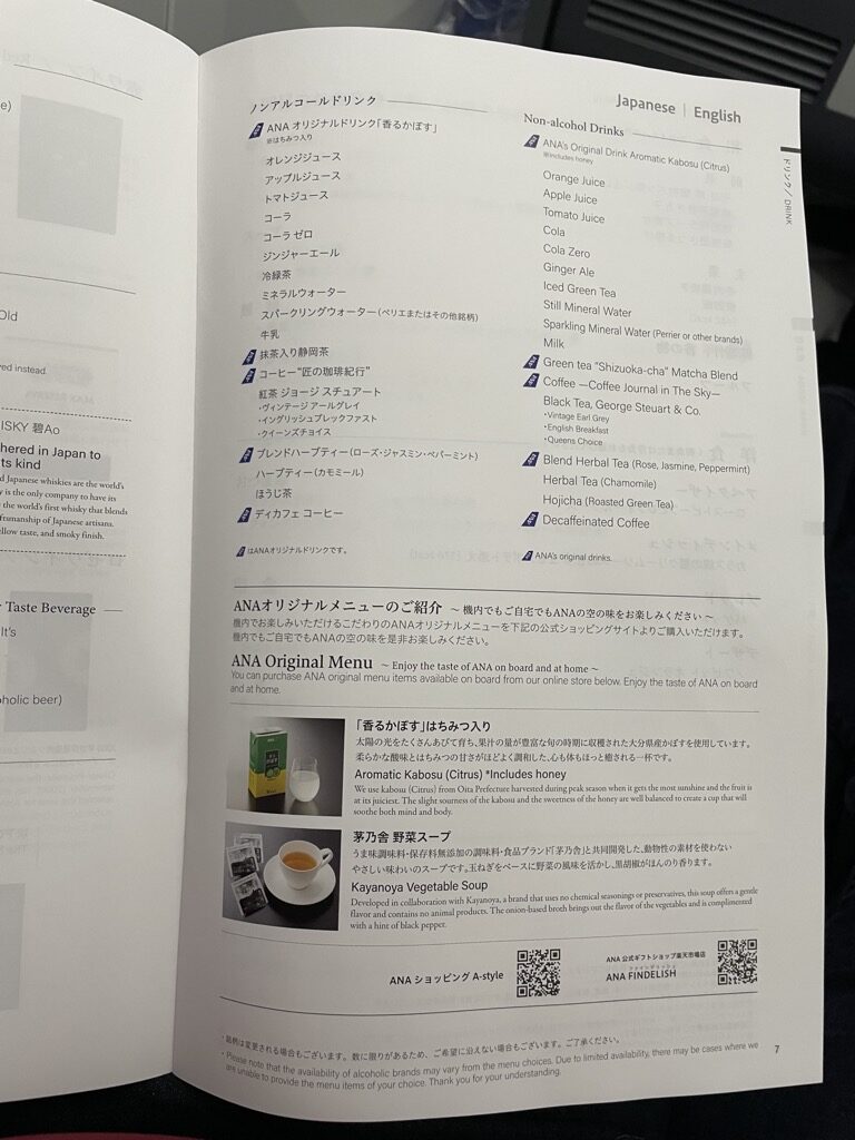 Die Speise- und Getränkekarte von ANA ist dabei durchaus umfangreich.