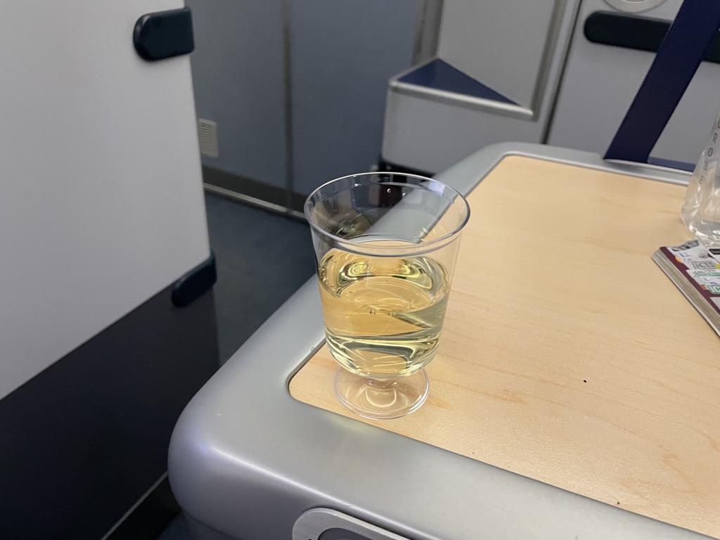 Schon vor dem Start gab es einen Welcome Drink am Boden. Hierbei gab es einen kalten Tee, Wasser oder Champagner zur Auswahl. Etwas überrascht hat mich, dass ANA hier Plastikgläser verwendet, was ich so bei einer 5 Sterne Airline nicht erwartet hätte und eigentlich nur von US Airlines so kenne, bzw. aus der Premium Economy Class.