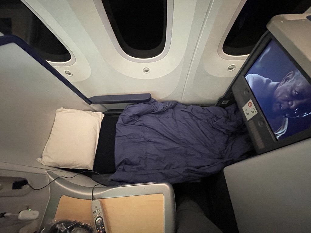 Der gesamte Dinner Service hat nur knapp 20 Minuten gedauert und tatsächlich waren wir erst 5 Minuten auf der endgültigen Reiseflughöhe, als mein Tablett schon wieder abgeräumt wurde und ich mein Bett in die Horizontale zum Schlafen bringen konnte.