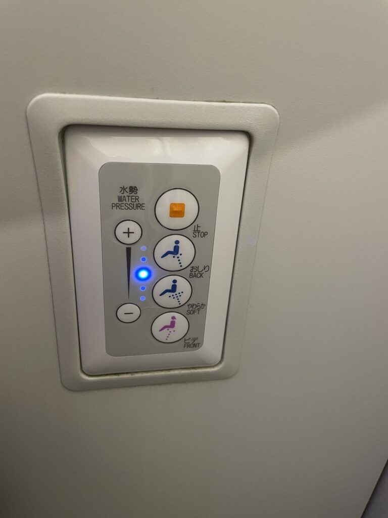 Ein immer wieder zu erwähnendes Highlight bei japanischen Airlines sind die Toiletten, denn hier hat man auch im Flugzeug japanische Toiletten mit Bidet Funktion. Tatsächlich muss man dies wohl mögen, aber für Japaner gehört dies wohl auch im Flugzeug dazu und ist eine Sonderausstattung die wohl auch nicht gerade günstig ist.