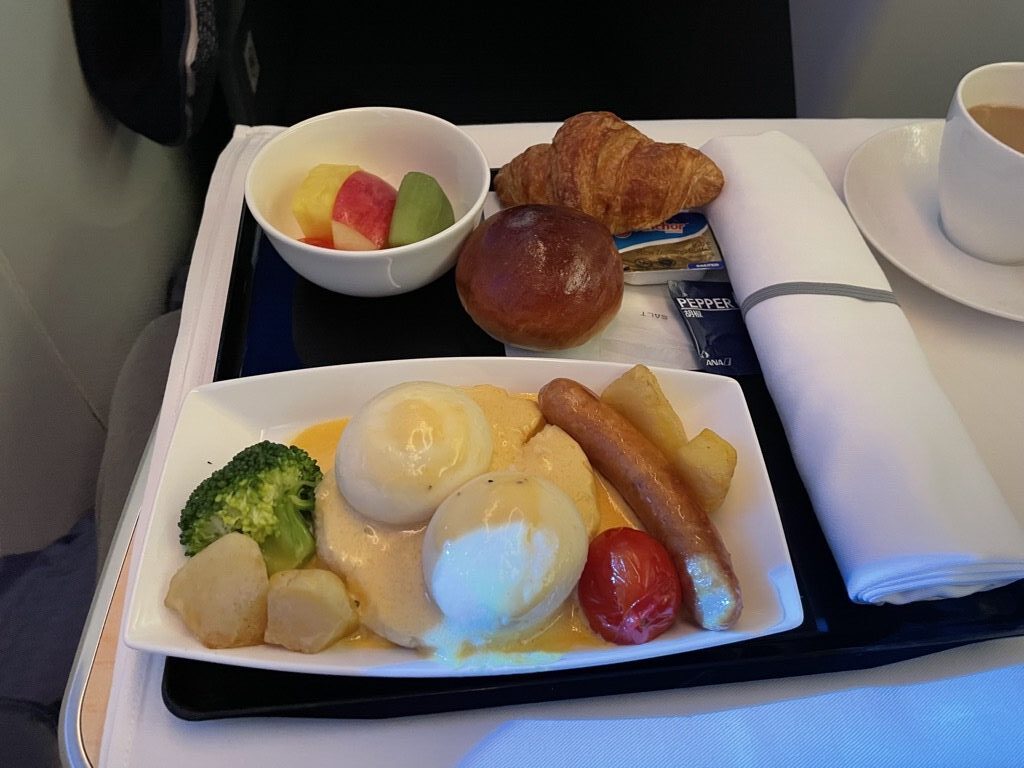 Geschmacklich war das Essen aber wieder fantastisch und vor allem die Eier haben mich sehr überrascht, denn ANA hat es hier geschafft, die Eggs Benedikt mit noch flüssigen Eigelb zuzubereiten. So etwas bekommen viele Airlines noch nicht einmal mit Koch an Bord und/oder in der First Class hin.