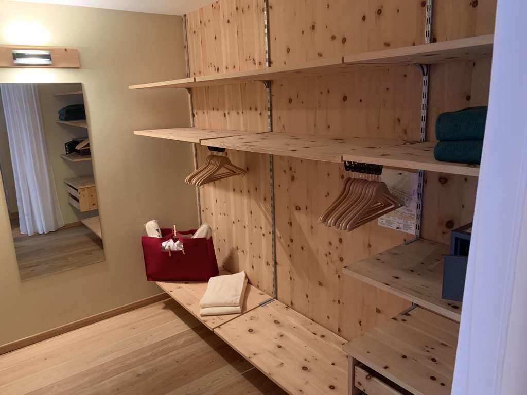 Der begehbare Kleiderschrank war mit einem Safe und einer Wellnesstasche inkl. Hausschuhe aus Schafswolle, Saunatüchern und Bademänteln ausgestattet. Wohn- und Schlafbereich waren wie auch das Bad sauber und die Möbel waren in einem sehr guten Zustand.