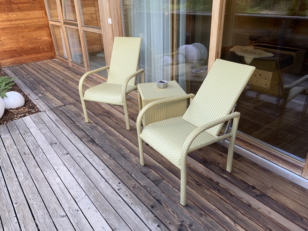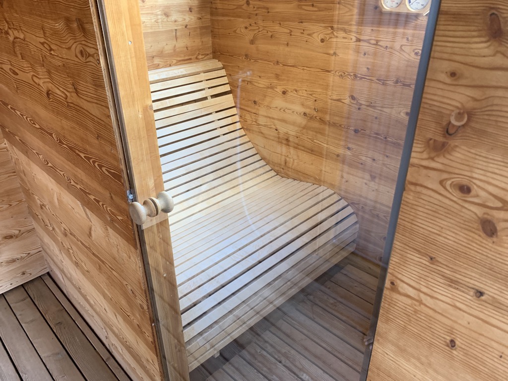 Mit ein absolutes Highlight der Suite war die großzügige Südterrasse inklusive eigener Sauna. Man konnte hier wirklich perfekt abschalten und das Wetter sowie die Aussicht ins Grüne genießen.