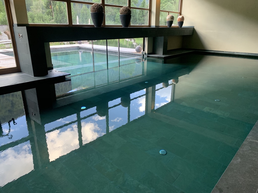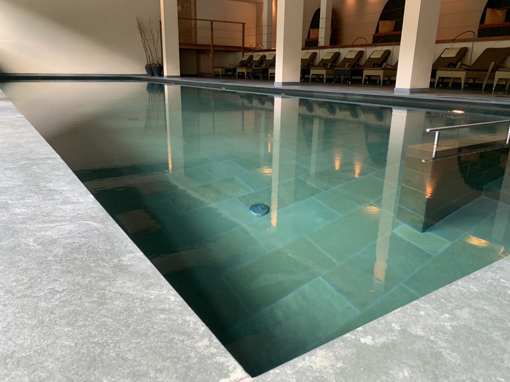 Beim Thema Poollandschaft wird einem sofort bewusst, dass das Arosea Life Balance Hotel ein besonderes Hotel ist. Neben einem schön gestalteten Innenpool mit vielen Ruheliegen und einem Außenbecken, gibt es noch einen großzügigen und schön angelegten Schwimmteich, welcher Anfang Juli bereits eine angenehm erfrischende Temperatur hatte. Geschwommen sind wir nur im Schwimmteich, weil er dadurch dass er nicht gechlort werden muss, deutlich hautfreundlicher ist. Schwimmteiche reinigen sich natürlich über die angelegte Bepflanzung. Auch hier waren ausreichend Liegen und Schirme vorhanden, die erfreulicherweise nicht sonderlich dicht zusammen standen.