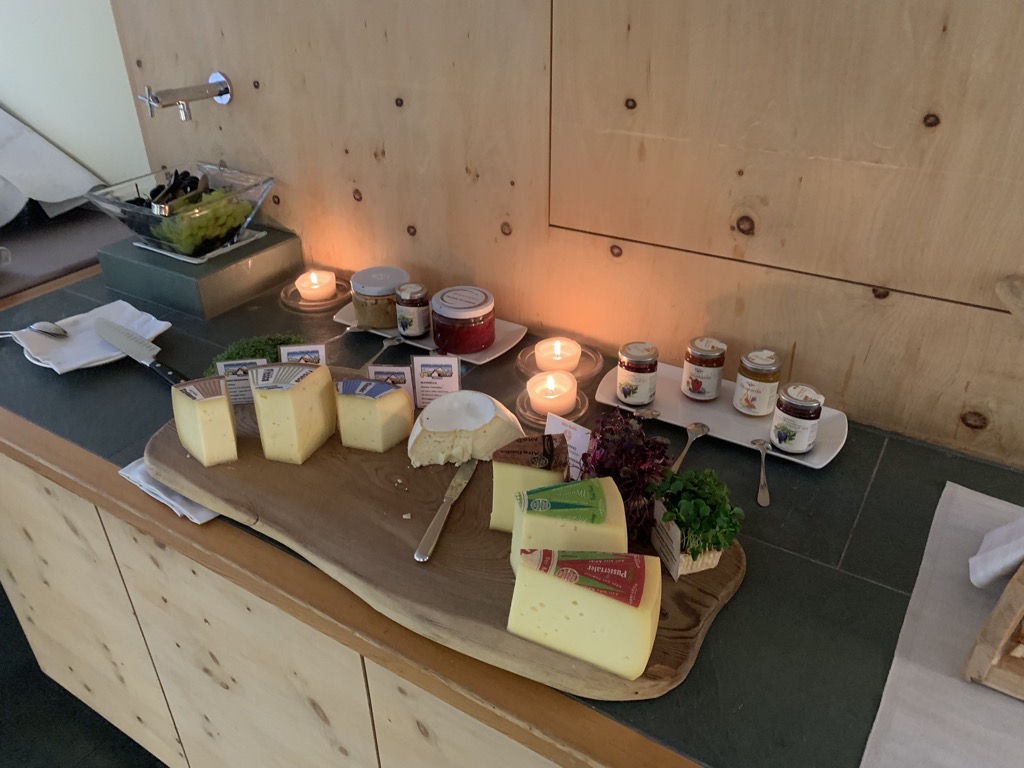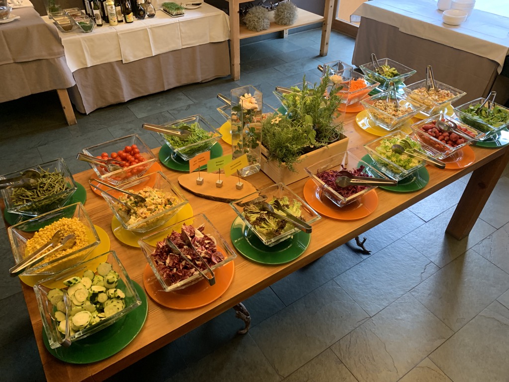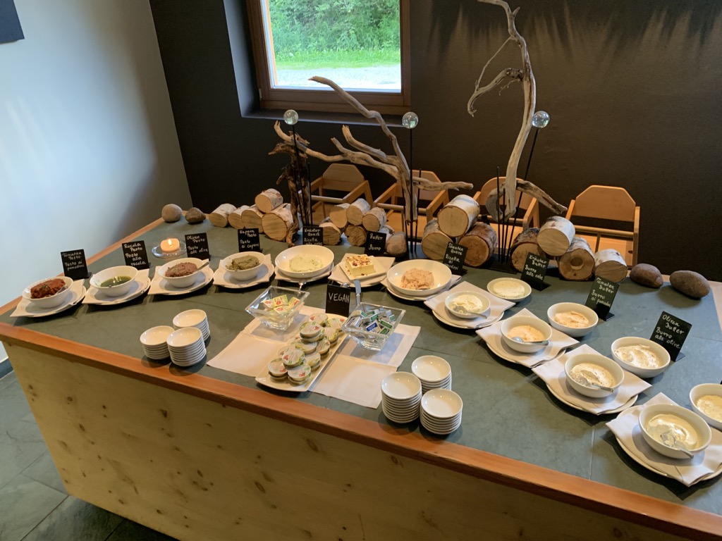 Zu Beginn des Abendessens durfte man sich immer am frischen Vitalbuffet mit Salaten, Broten und Aufstrichen bedienen, danach wurden alle weiteren Gänge am Tisch serviert. Neben dem Dessert standen auf dem Buffet verschiedene Käsesorten und Obst bereit.