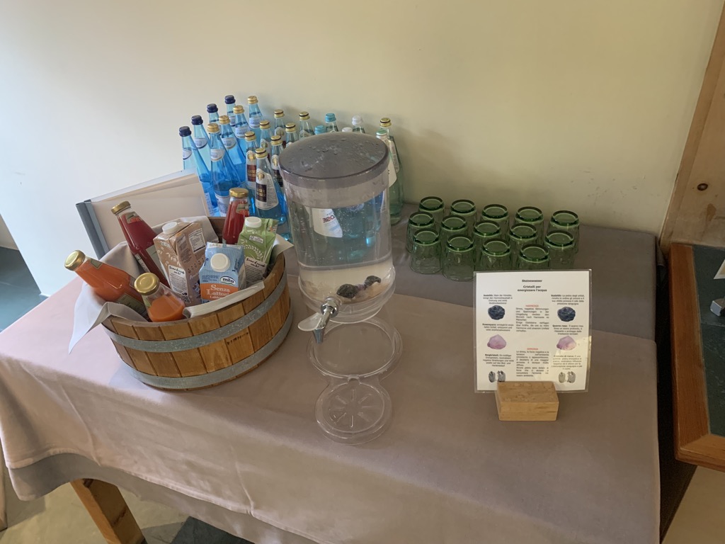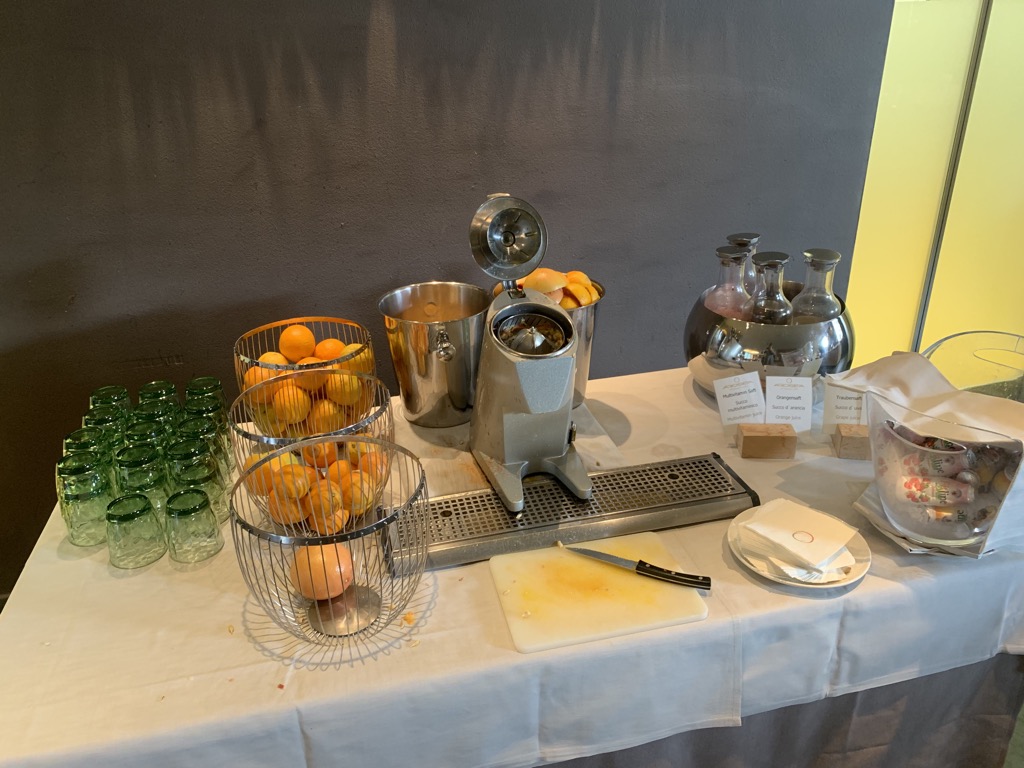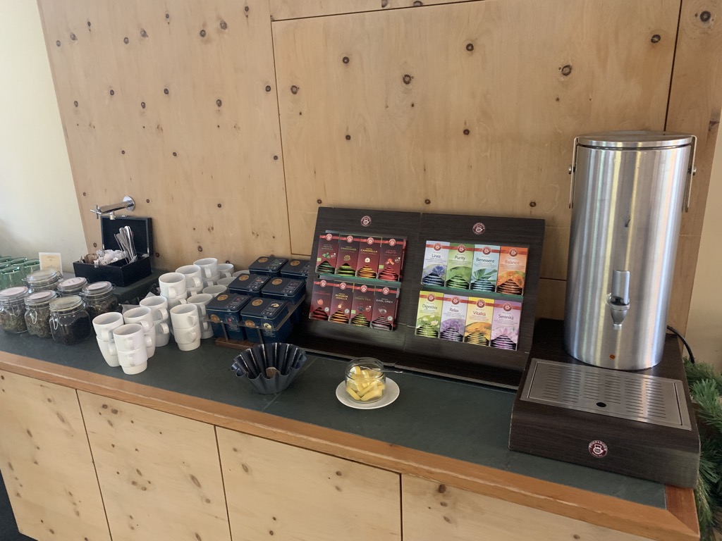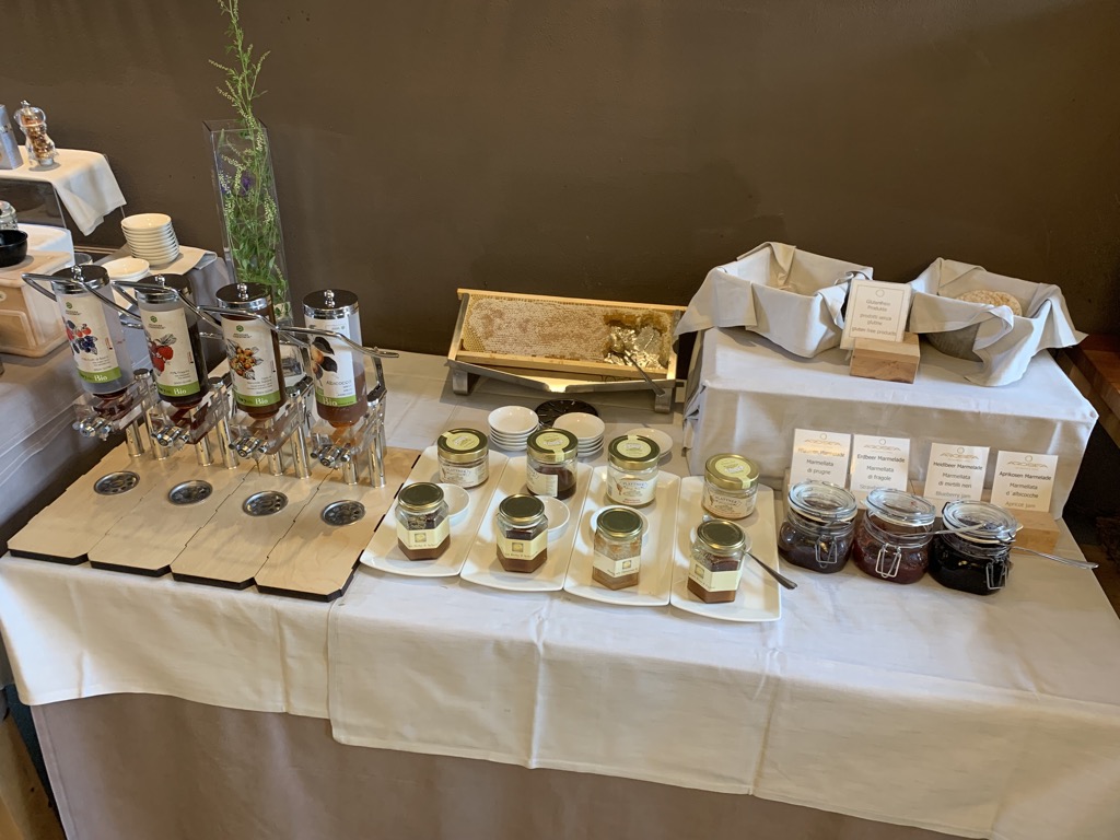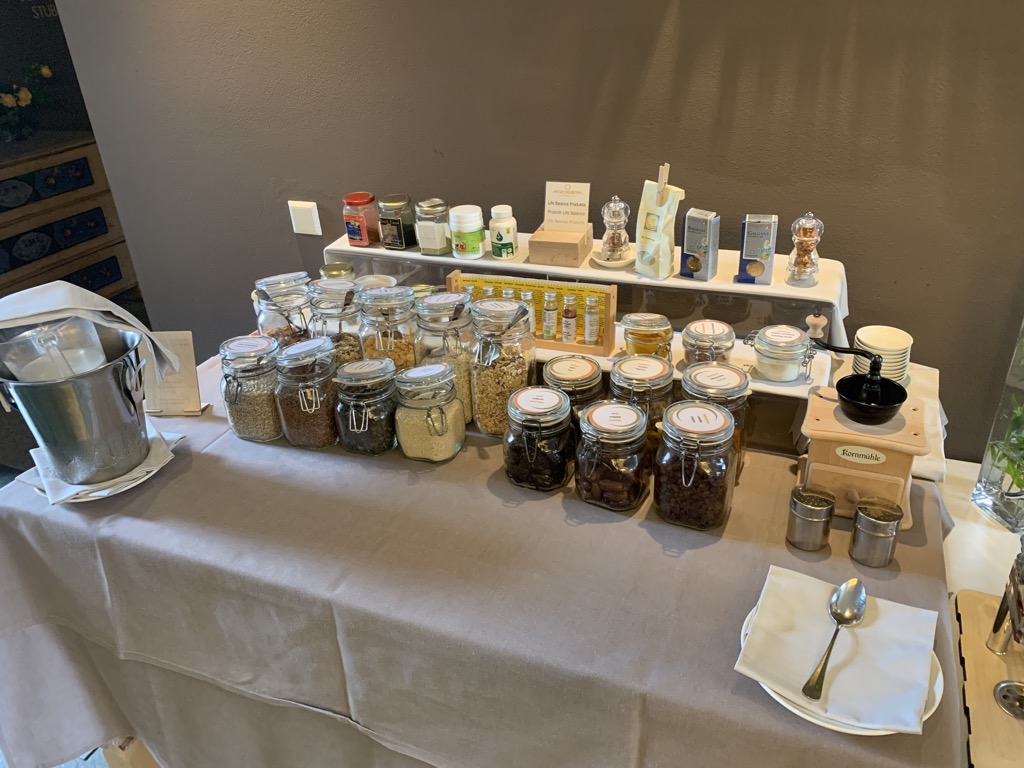 Schön fand ich auch, dass man auf dem Buffet direkt Alternativen finden konnte, falls Unverträglichkeiten bei Laktose oder Gluten vorliegen. Auch sehr angenehm war, dass zu jeder Zeit im Hotel Wasser bereit stand, so auch beim Frühstück. Neben der Auswahl Sprudel oder Still, konnte man auch noch zwischen verschiedenen Ursprungsquellen und Anbietern auswählen.