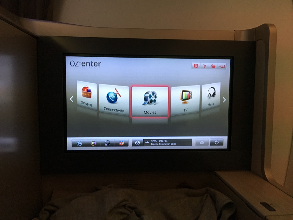 Auch die Decke und das Kissen waren in meinen Augen viel zu klein. Besonders die Decke war nur in etwa so breit wie der Sitz, wodurch man sich nicht richtig einmummeln kann. Andere Airlines bieten Bettzeug in der First Class, welches an das in guten Hotels erinnert. Hier hat Asiana leider Nachholbedarf in der Fist Class.