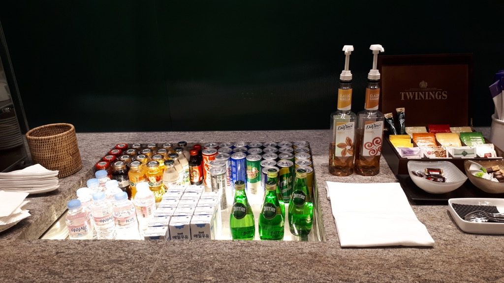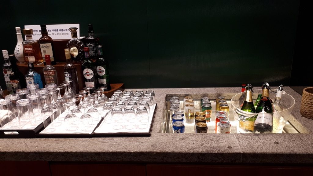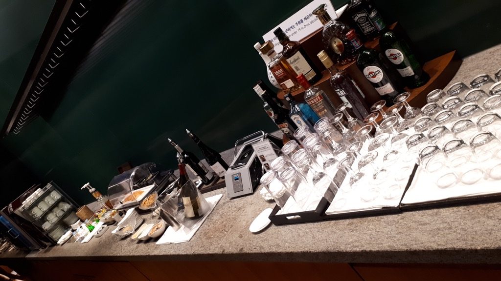Früher gab es nur koreanisches Bier oder Heinecken. Dafür ist die Quantität schlechter geworden. Aufgrund der hohen Auswahl stehen von jeder Sorte meist nur zwei bis drei Dosen, bzw. Flaschen zur Verfügung, da kann ganz schnell ein Engpass entstehen. Das Buffet mit den warmen Speisen und Salaten ist deutlich besser geworden. Das ist auch gut so, denn im Flieger ist es schlechter geworden.