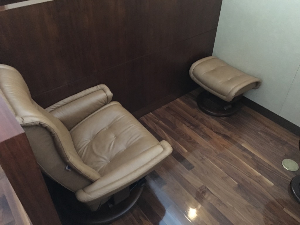 Die Asiana First Class Lounge wirkte auf mich im ersten Moment sehr hell und offen, allerdings gibt es viele, voneinander getrennte Sitzgruppen mit verschiedenen Sesseln und Couches. Ich hatte von Asiana als koreanische Airline ein sehr modernes Loungedesinge erwartet, allerdings war die Lounge eher wie ein Wohnzimmer mit viel Holz- und Erdtönen eingerichtet.