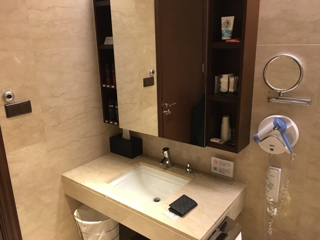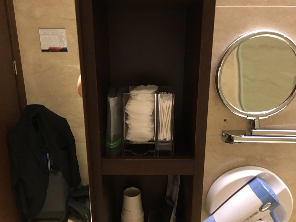 Wenn man am Buffet vorbeiläuft, kommt man zu den Toiletten und Duschen. Besonders die Duschen waren schön gestaltet, ausreichend groß und gut gelüftet. Das Angebot an Amenitys in den Duschen war dabei wirklich überdurchschnittlich. Die Duschen in der Asiana First Class Lounge gehören damit in meinen Augen zu den besten der Welt und können problemlos mit denen im Lufthansa First Class Terminal mithalten. Lediglich die Badewanne und die Enten fehlen hier.