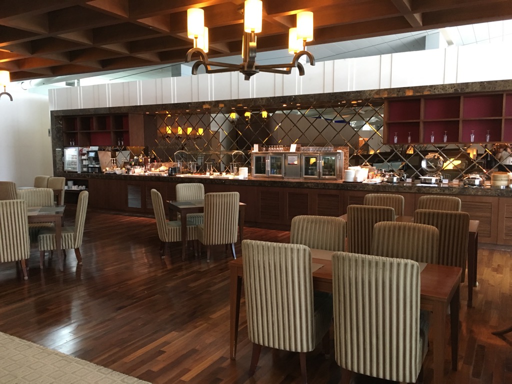 Am Ende der Lounge befand sich der Dining Bereich. Neben einigen schönen Esstischen gab es hier auch ein kleines Buffet.