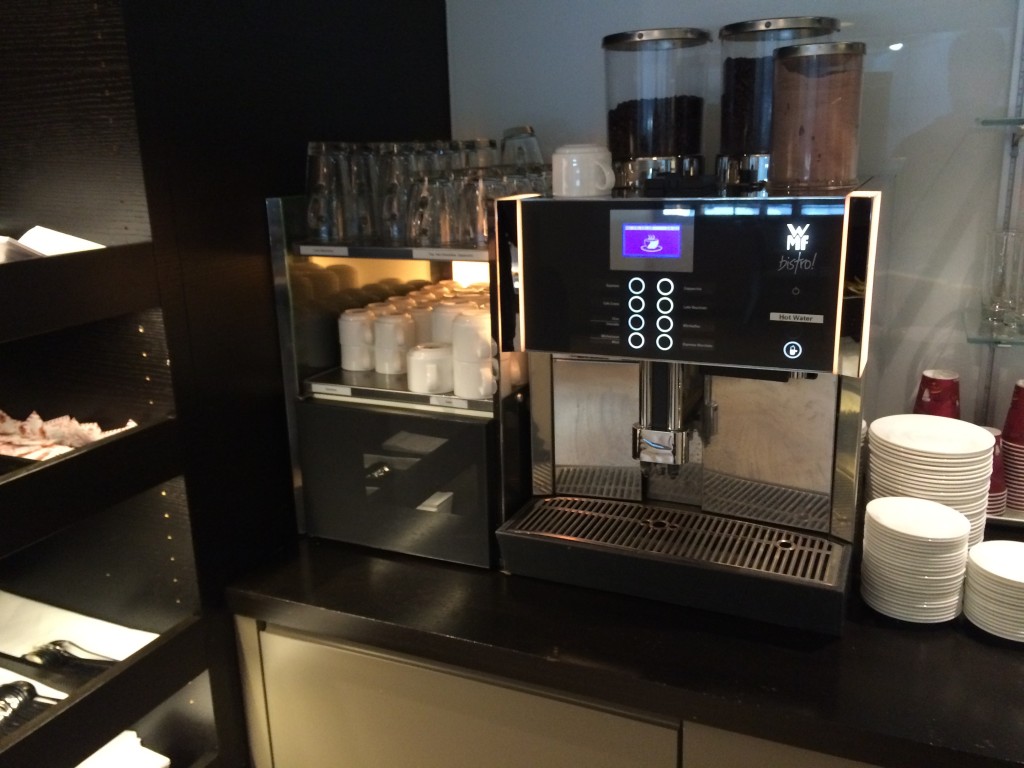 Besonders hervorheben möchte ich die Kaffeemaschine. Diese ist zwar eine „normale“ WMF Industriemaschine, wie man sie auch in allen anderen Lounges am Flughafen in Zürich findet, aber es gab To-Go-Cups , also Kaffeebecher zum Mitnehmen. Besonders bei einem frühen Abflug eine schöne Sache.
