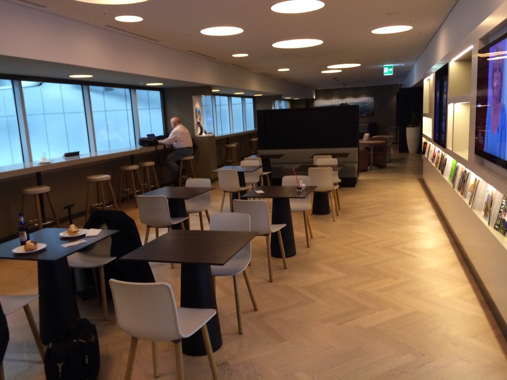 Die Aspire Lounge Zürich wurde vor etwa einem Jahr frisch renoviert und macht so einen modernen und insbesondere sauberen Eindruck. Die Lounge ist in verschiedene Zonen unterteilt. Im vorderen Bereich befindet sich ein heller Restaurantbereich mit sehr viele Tischen und Stühlen. Hier lässt es sich auch wunderbar ein wenig vor seinem Abflug arbeiten. Die Lounge verfügt über WLAN mit vernünftiger Geschwindigkeit. Einen individuellen Zugang erhält jeder Gast am Eingang. Leider erhält man nur Zugang für eine Stunde, was sicherlich für viele Loungebesucher zu wenig ist.
