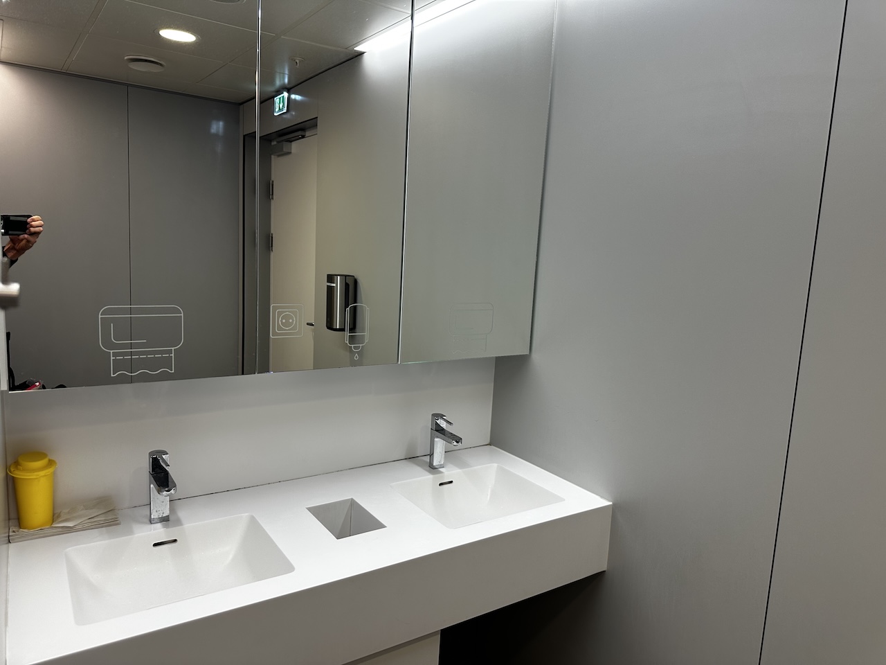 Die Waschräume sind außerhalb der Senator Lounge, diese sind ziemlich klein und eng geraten. Nebendran befinden sich auch Duschen, eine Buchung ist über die Rezeption möglich und kostenfrei.