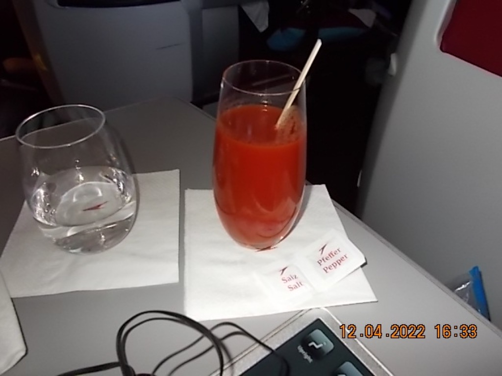 Nachmittags trinke ich persönlich gerne Kaffee und habe dazu Kuchen oder Kekse, wonach ich dann in der Galley gefragt habe. Der Kaffee wurde mir prompt gebracht und weil es wohl keinen Kuchen und keine Kekse an Board gab, wurden mir mehrere kleine Schokoladentäfelchen dazugelegt. Super gelöst! Der Flug zog sich noch etwas hin, so dass ich später noch einen Tomatensaft bestellte.