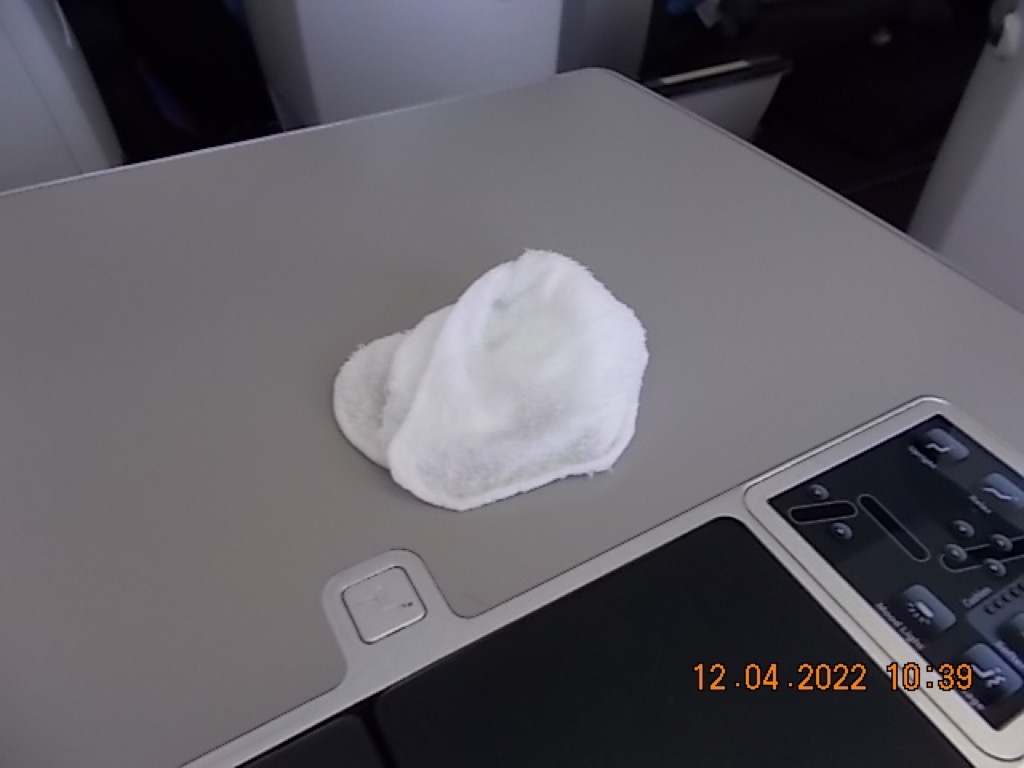 Die Crew war während des gesamten Fluges – auch zwischen den Mahlzeiten – permanent für die Fluggäste präsent und ansprechbar. Sämtliche Getränkewünsche hat sie nicht nur bereitwillig erfüllt, sondern auch selbst proaktiv Getränke angeboten. Da man zuletzt viel über unzufriedene Flugbegleiter gehört hat, fragte ich mal bei den beiden Stewardessen nach, wie sie denn ihre Arbeit sehen. Sie antworteten beschwingt, dass es „ihr Traumberuf sei, den sie total gerne machen“. Über mein Lob über den hervorragenden Service haben sie sich sehr gefreut.