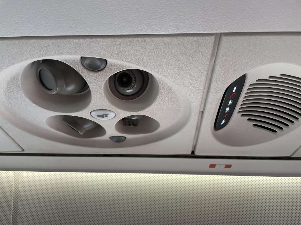 Wie üblich in der Kurzstreckenflotte der Lufthansa Gruppe gibt es kein individuelles Inflight-Entertainment-System mit Bildschirm am Sitz. Auch auf Lademöglichkeiten für eigene Endgeräte wird verzichtet. Zumindest auf den ausklappbaren Tisch, das persönliche Leselicht und eine Belüftungsdüse wird nicht verzichtet.
