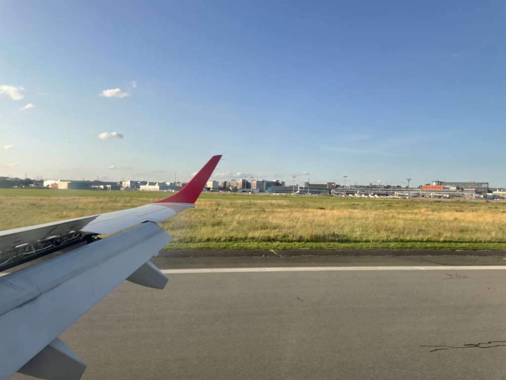 Die Maschine kam leicht verspätet an, Boarding wurde halbwegs rechtzeitig begonnen. Aber: wir mussten bei über 35 Grad in einen nicht klimatisierten Bus einsteigen und wurden dann eine Ewigkeit stehen gelassen.