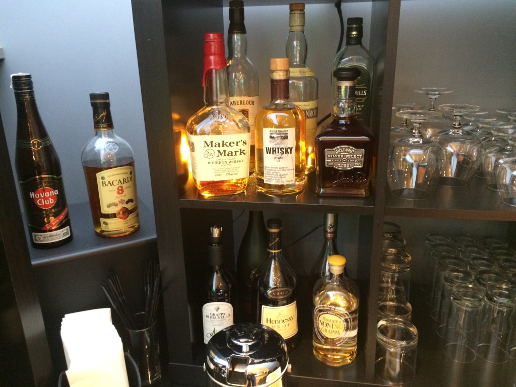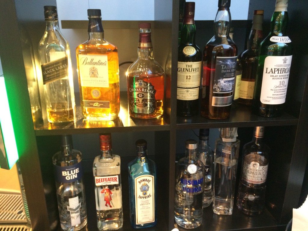 Neben diversen Soft-Drinks, Säften und Bieren gibt es in der Austrian Airlines HON Circle Lounge in Wien auch eine breite Auswahl an Spirituosen und Weinen.