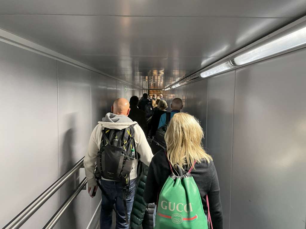 Zum Einstieg bereit war mein Flug pünktlich um 22:05 Uhr am Gate D06 des Non-Schengen-Bereichs am BER. Als ich das Gate erreichte, wurde bereits zum Einstieg für Gruppen 1 und 2 aufgerufen. Trotzdem saßen noch jede Menge Fluggäste auf ihren Plätzen, sodass ich davon ausgehe, dass Condor hier noch weitere Gruppen nach meiner Gruppe 2 hatte. Und das, obwohl ich auf einem Eco-Light-Tarif gebucht war. Ob es der Sitz in der Notausgangreihe oder das zugebuchte Handgepäck war, welches mir den schnellen Einstieg sicherte, ist mir unklar.