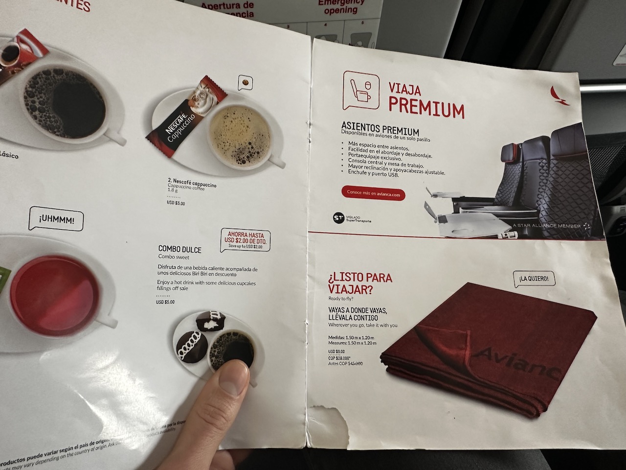 Ich habe am Vortag online eingecheckt, der Prozess war denkbar einfach. Dank der Star Alliance Gold Karte durfte ich ein zweites Gepäckstück mitnehmen und Sitze am Notausgang auswählen. Am Flughafen ging es nur noch zum etwas rudimentären Schalter, dort musste ich unterschreiben, dass mein Koffer Gebrauchsspuren hatte und ich Avianca dafür nicht haftbar machen werde.