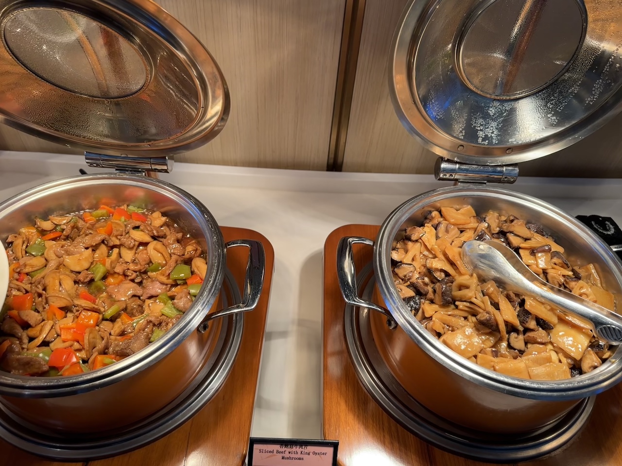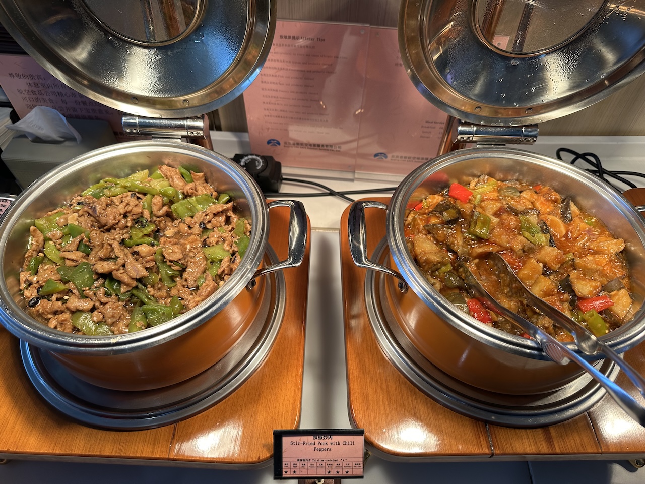 Um 11 Uhr wurde das Lunch-Buffet bestückt, die Auswahl war groß und beinhaltete diverse Fleisch- und Nudelgerichte, Curries, Gemüse und Beilagen.