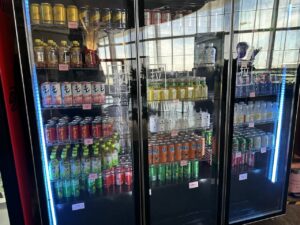 Im Angebot stehen darüber hinaus auch alkoholische Getränke wie Bier und Wein, es gibt aber auch einige Spirituosen wie Gin, Whiskey, Rum o.ä.